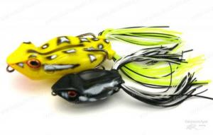 Поверхностная приманка-незацепляйка, имитирующая лягушку и оснащенная двойным крючком.