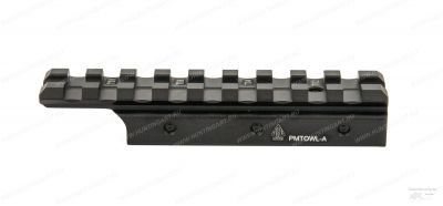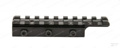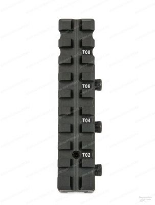 Верхняя база - планка Вивер (Weaver) длиной 100 мм с 9 слотами обеспечивает достаточно места для удобного и эффективного монтажа оптики. Три высокопрочных стопорных винта предотвращают продольное перемещение переходника по базе оружия.