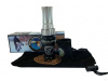 Горн манка выполнен из авиационного алюминия, а ствол из акрила. Так же манок оснащен кольцом из авиационного алюминия с гравировкой, и чехлом-держателем с карабином. Это коротко-язычковый манок.