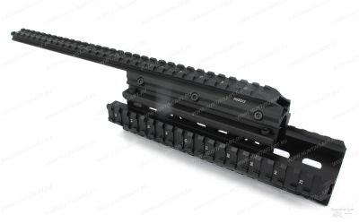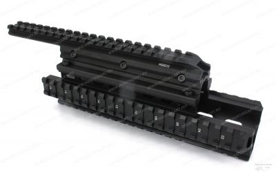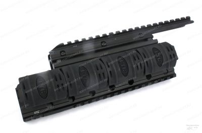 Цевье тактическое с четырьмя планками Вивера (Weawer) для установки оптических прицелов, сошек, пистолетных рукояток, подствольных фонарей, ЛЦУ и прочих приборов на на охотничий карабин 12 калибра Сайги 20 (СОК-12), Сайги 410, Сайги 12. При небольшой переделке возможно установить на практически все АК вариации оружия. Для установки данной базы Weaver доработка карабина не требуется.