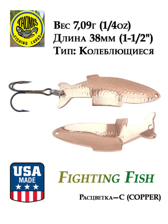 Колеблющиеся блёсна Fighting Fish весом 1/4 oz от Американской компании Thomas.
