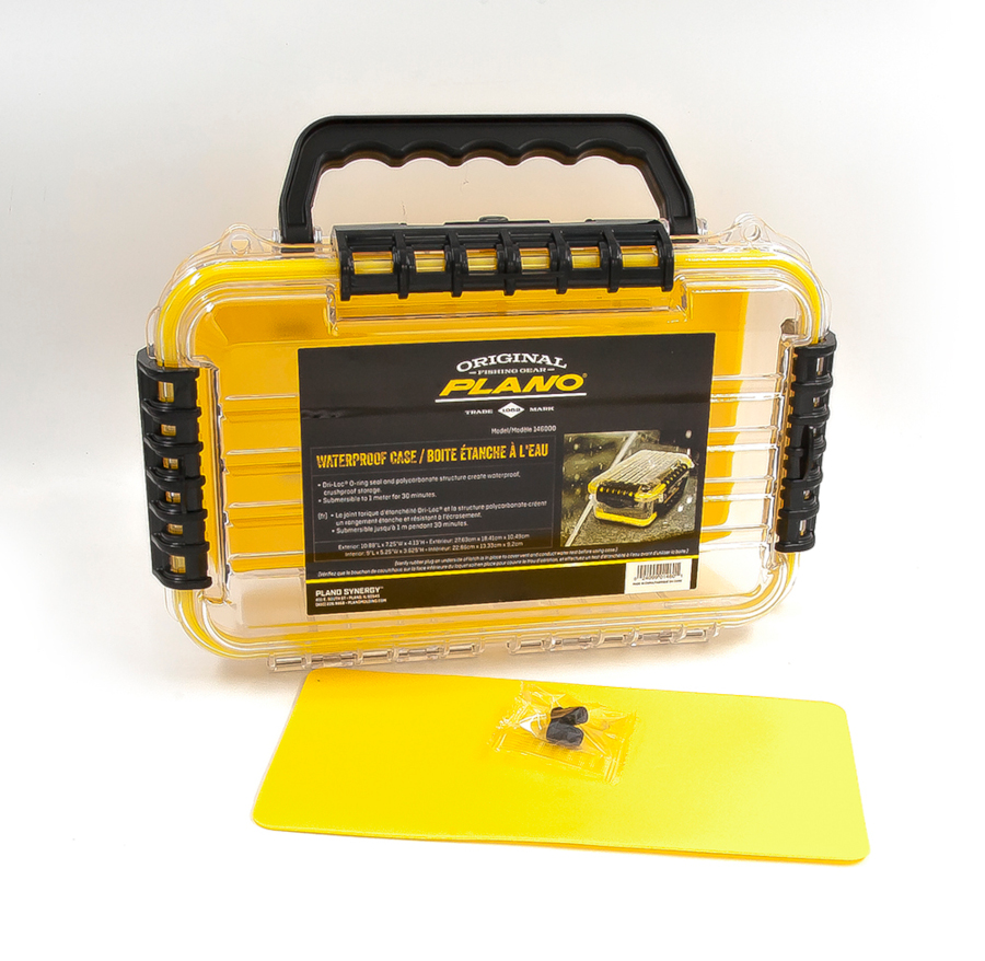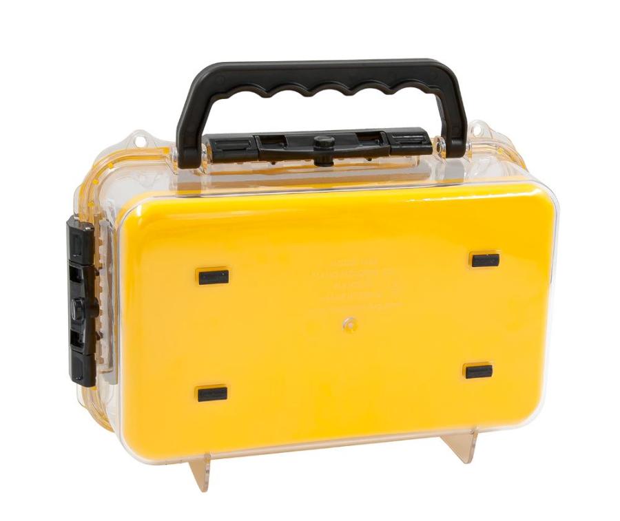 Бокс Waterproof Case (3600) снабжен, патентованными замками (3 шт.) черного цвета, которые надежно закрывают крышку и уплотненным кольцом по периметру. Внутренняя резиновая подкладка ярко желтого цвета, обеспечивает содержимому бокса сохранность во время транспортировки. Выдерживает погружение на глубину до 1 м на время до 30 минут. Переноска бокса осуществляется за удобную пластиковую ручку. Есть 2 проушины для навесных замков или пломб. Идеальный вариант для рыбалки, охоты, туризма, кемпинга.