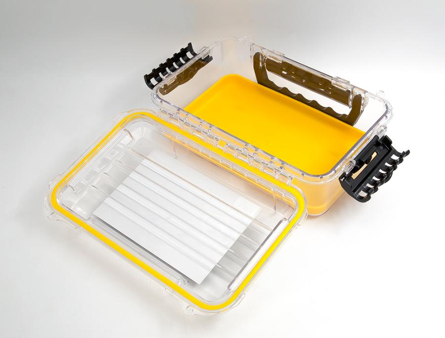 Удобный и вместительный ящик размером 27x18x10 см, полностью водонепроницаемый. Изготовлен из поликарбоната с прозрачной крышкой и стенками. Такая конструкция позволяет осмотреть все упакованные вещи без необходимости открытия бокса. Определив местонахождение нужной вещи, можно быстро открыть коробку и извлечь нужный предмет, не вытаскивая остальные. Бокс невосприимчив к перепадам температур.