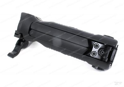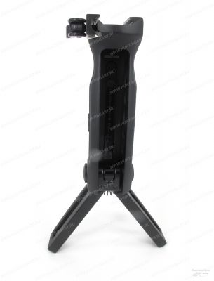 Это уникальное изделие, совмещающее в себе тактическую рукоятку переноса огня и сошки для оружия. Опорные части сошки убираются внутрь рукояти. Устанавливаются на плану Weawer/ Picatinny с рычажным механизмом. Рукоять имеет высоту 130мм, а в разложенном состоянии 203мм