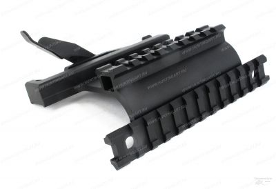 Быстросъемная двухсторонняя база Weaver/Picatinny для установки на ствольную коробку автомата АК и его модификаций, а также карабинов Сайга, Вепрь, Тигр (СВД) ЛЦУ, подствольных фонарей и прочих приборов и приспособлений.