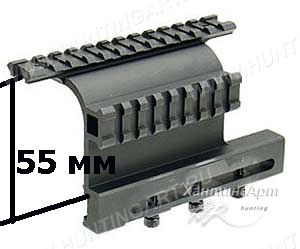 - Высота "выноса" нижнего свода основания Weaver вверх: 55 мм от верхнего среза "ласточкиного хвоста" бокового крепежа.
