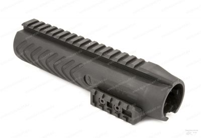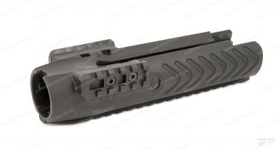Изготовлено цевье из высокопрочного полимера черного цвета. Установка цевья позволяет без проблем закрепить на оружии фонарь, лазерный указатель. На изделии дополнительно имеются три встроенных планки Пикатинни. Две боковые съемные планки, идеально подходят для установки фонаря / лазера. Длинная нижняя планка идеально подходит для установки рукоятки управления огнем. Совместимо цевье такого плана исключительно с Mossberg 500. Удобно использование данной модели не только при работе в обычных условиях, но и при использовании оружия в закрытых пространствах, а также в неблагоприятных погодных условиях. Устанавливается самостоятельно, не требует модификаций и специальных навыков.