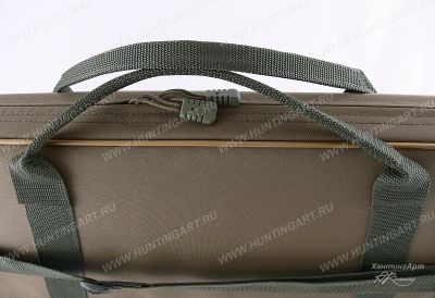 Мягкий чехол из капрона с поролоном и тканевой подкладкой для двуствольного ружья в разобранном виде.