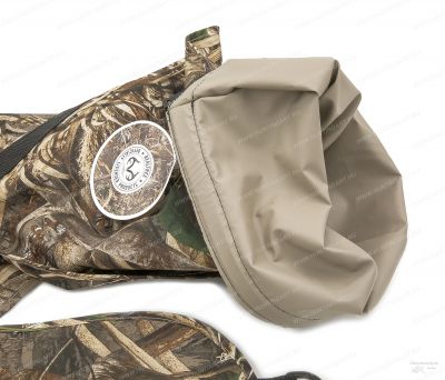 Чехол изготовлен из прочной, двухслойной водонепроницаемой ткани с высокочастотными спаянными швами. Изделие не боится воды, легко стирается и быстро сохнет (так как не впитывает воду). Закрывается чехол по технологии Roll-Top (застежка – скрутка), и соединяется между собой пластмассовой застежкой фастекс, что и создает небольшую ручку для переноски. Для переноски и транспортировки чехла имеются две прочные ручки. Чехол не имеет карманов и плечевого ремня. Снабжен тремя D-образными кольцами.