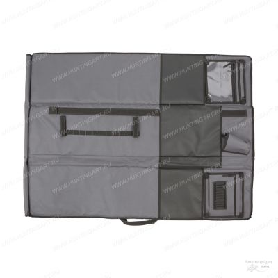 Чехол выполнен из синтетической нейлоновой ткани Cordura 600D, которая имеет особую структуру нити, имеющую водоотталкивающую пропитку и покрытие полиуретаном. Между слоями ткани присутствует прослойка полиэтилена, которая защищает находящееся в чехле оружие от ударов. Прочность и многофункциональность будут являться основными качествами данной модели. Нагрудная часть мата выполнена с усилением для устойчивости оружия, а подножная (откидная), часть чехла-мата выполнена из непромокаемого материала.