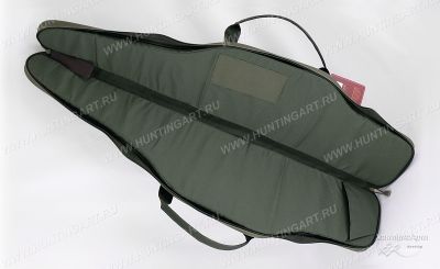 Чехол выполнен из плотной и износоустойчевой ткани. Чехол содержит поролон и подкладку смесового материала, которые защищают оружие от царапин и других механических повреждений. Также имеется вшивной сумочный кант-кедер (полиэтилен) для придания формы каркасу изделия, для увеличения прочности шва, и в качестве декоративного элемента. Переноска футляра для оружия осуществляется ручками (для удобства переноски могут соединяться вместе), которые выдерживают большую нагрузку, так как прошиты вокруг сумки. С одной стороны чехла находится регулируемый по длине ремень, который позволяет переносить чехол не только за ручки в горизонтальном положении, но и на одном плече вертикально. Ремень и ручки выполнены из прочной нейлононовой стропы (Paracord). Закрывается основное отделение на молнию с двумя замками, которая частично защищена от дождя и грязи специальными накладными тканевыми планками. Также на чехле имеется специальная петля, которую удобно использовать при хранении чехла, подвешивая его.