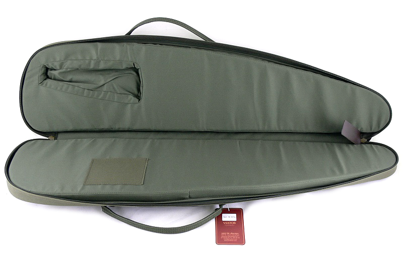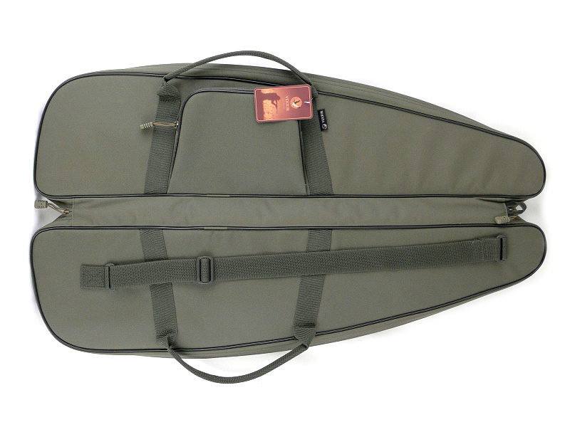 Чехол выполнен плотного, износоустойчевого материала. Чехол содержит поролон и подкладку из смесового материала, которые защищают оружие от царапин и других механических повреждений. Внутри для более удобного размещения оружия в прокладке предусмотрена выемка.