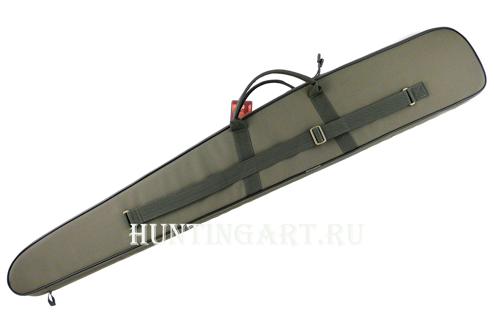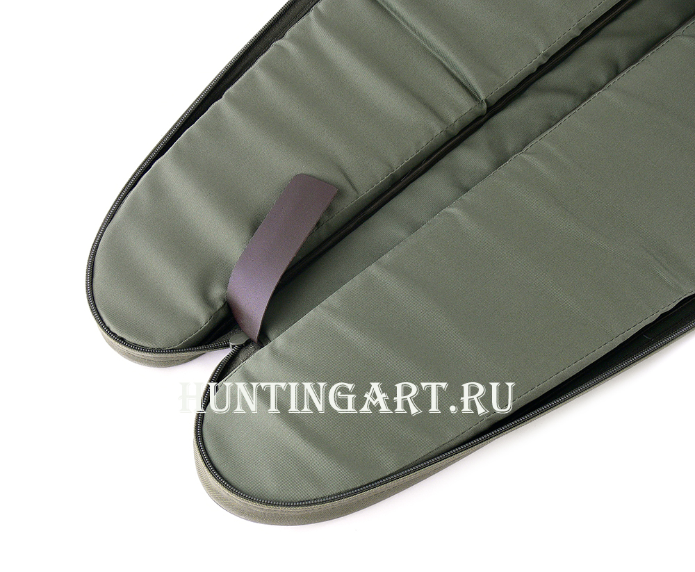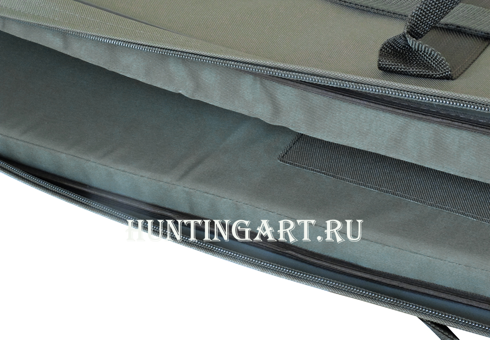 Чехол изготовлен из водонепроницаемой синтетической ткани и прошит прочными лавсановыми нитями. Закрывается чехол на молнию которая выполнена из двух частей и может закрываться на подвесной замок, частично закрыта тканью для защиты от грязи и пыли. Переноска осушествляется засчет двух ручек или на регулируемом по длине плечевом ремне. На внешней части чехла имеется карман длиною 100 см. под дополнительный ствол, закрывается карман на молнию. В нижней части чехла есть петля для переноски или подвески.