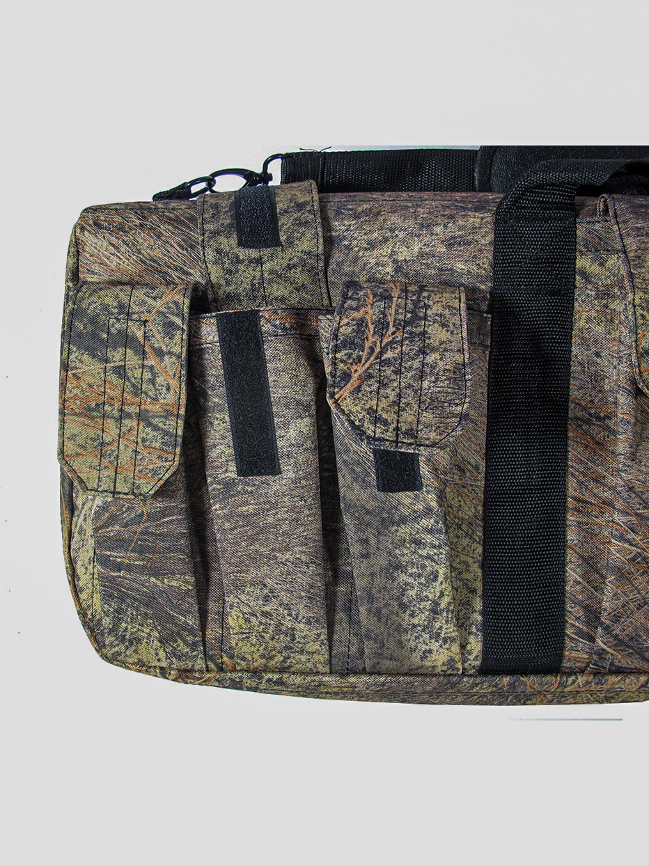 Легкий, надежный и удобный чехол для тактических винтовок с оптикой или без. Изготовлен из водоотталкивающей ткани Ендура (Endura) 1200D х 600D и полиэстра. Максимальная защита оружия от ударов и царапин обеспечивается мягкой прокладкой из пены дюймовой толщины высокой плотности. Запираемые молнии из высококачественных материалов обеспечивают защиту от попадания внутрь чехла пыли и грязи, предотвращая возможность царапанья оружия и мелких аксессуаров. На лицевой стороне чехла есть шесть внешних небольших кармана для различных аксессуаров (один на молнии и пять карманов на липучке). Закрывается чехол на надежную двухстороннею молнию. Чехол для оружия имеет прочные (усиленные) ручки для переноски. Сверху чехла имеется регулируемая по длине лямка для переноса оружия на плече. На конце чехла располагается петля для подвеса на крючок.