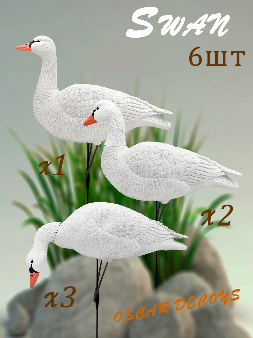 Чучела для охоты Лебедь OscarDecoys Avian-Mix Elite 3D – это идеальный комплект из шести сминаемых чучел, который станет незаменимым помощником для любителей охоты. Эти чучела помогут максимально точно имитировать настоящих лебедей, благодаря чему вы сможете значительно повысить свои шансы на успешную охоту. Каждое чучело выполнено с высокой точностью, наделено детализацией, что делает их отличной подсадной приманкой.