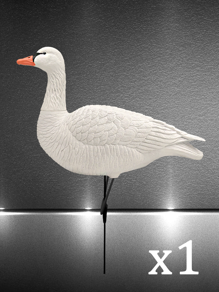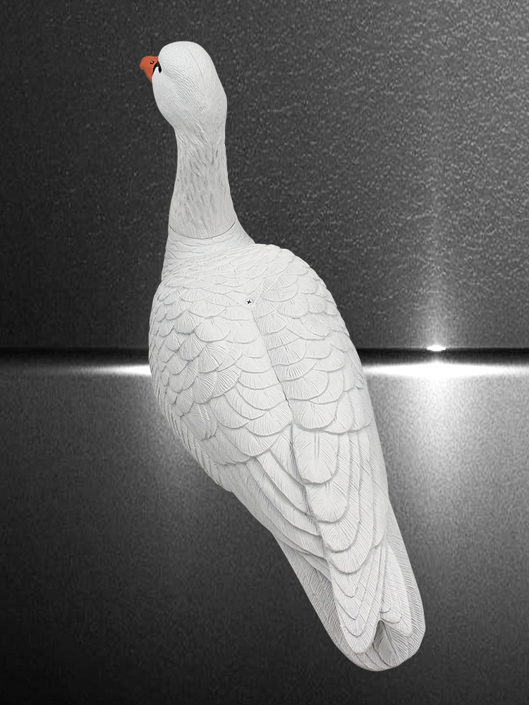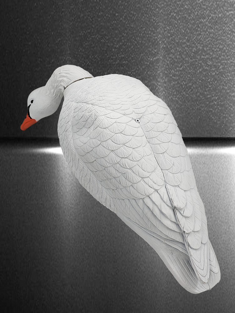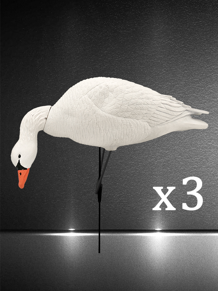 Чучела устанавливаются на стеклопластиковую стойку, с передвижным крючком для фиксации чучела и оранжевым хлястиком имитирующим лапы. При небольшом ветре за счет малого веса чучела начинают двигаться на стойке и создают впечатление "живой", "кормящейся стаи".