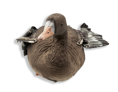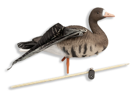 Чучело имеет размах крыльев - 104 см. Корпус чучела выполнен из мягкого пластика, а крылья - из ткани. Стойка имеет высоту 60 см и выполнена из стекловолокна. Чучело компактное и легко складывается, что удобно для транспортировки. В комплекте идет пульт дистанционного управления для управления движениями крыльев и сумка для транспортировки.