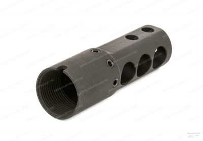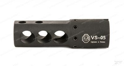 ДТК VS-05 - дульный тормоз-компенсатор.Ставится на оружие для его стабилизации на момент ведения огня, а также уменьшения нагрузки, приходящейся на торс стрелка. Предназначен для установки на Карабины Сайга, АК-74 и модификации. Резьба - М24х1.5 правая