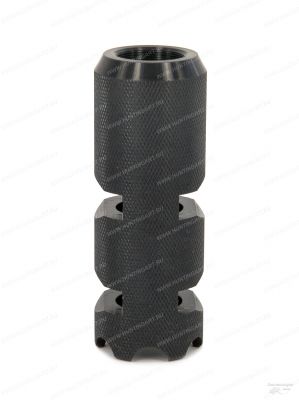 Изделие предназначено для установки на огнестрельное оружие типа ВЕПРЬ-12/САЙГА-12. Изделие эффективно гасит подброс и осевой откат оружия (отдачу), позволяет стрелять без применения средств защиты слуха. Гашение осевого отката оружия происходит за счёт сброса газов в правую и левую полусферы через четыре ( по две на каждую сторону ) дюзы. Гашение подброса происходит за счёт сброса газов в верхнюю полусферу через две дюзы.