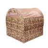 Засидка достаточно большая, в ней свободно могут разместиться 2 охотника в сидячем положении. Конструкция засидки автоматическая, что позволяет, как быстро установить засидку в рабочее положение, так и разобрать ее после окончания охоты. В засидке используются сетчатые смотровые окна на молнии, которые быстро открываются и закрываются. В засидке расположены 6 смотровых окон: 2 сверху, 2 сбоку и 2 с торца. Верх засидки состоит из 2 частей. Одна половина из сетчатого материала (для обзора за небом), которая откидывается в сторону, что позволяет вести прицельную стрельбу по налетевшему гусю или утке. Вторая половина верха из основного материала (не откидывается). Пола у засидки нет. Боковые стенки укрытия изготовлены из прочного не продуваемого материала, что защищает от ветра и дождя. Одна стенка засидки без окон. С трех других сторон засидки имеются окна из сетки в верхней части, закрывающиеся на молнию, что обеспечивает отличный обзор и позволяет производить выстрел не только через верх. Надежный сборный каркас из стеклопластиковых дуг. По всему периметру засидки имеется большое количество пришитых полосок ткани из эластичного материала для крепления пучков травы и веток (дополнительная маскировка местной растительностью). С одной стороны вход, закрывающийся на молнию.