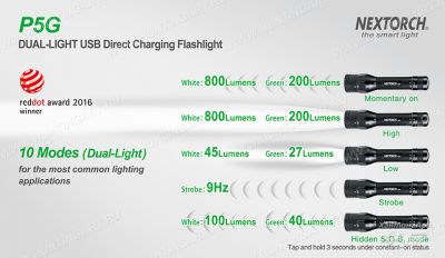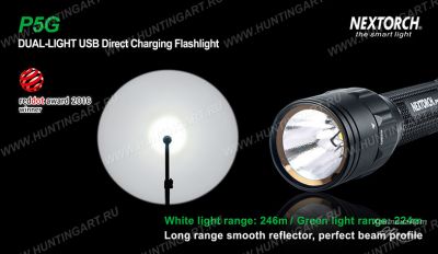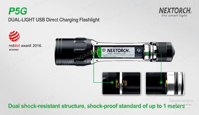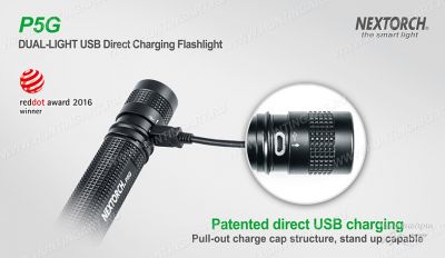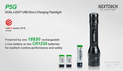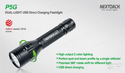 Фонарь аккумуляторный с двойным источником света P5G и c micro USB от Китайской компании NexTorch.