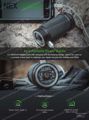 Фонарь аккумуляторный Saint Torch 11 с максимальной мощностью 3500 люмен, и тактической сумкой для переноски от Китайской компании NexTorch.
