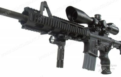 Закрепляется на оружии, имеющем нижнюю переднюю планку WEAVER (Вивера)/ Picatinny (Пикатини) на цевье (ложе, прикладе).