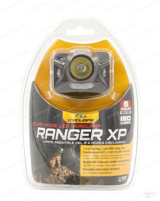 Cyclops Ranger XP 126 содержит 1 ультра - яркий белый светодиод CREE XPE мощностью 1 Вт, 3 нижних зеленых светодиода и 4 боковых красных светодиода со стробоскопом, поставляется в комплекте с удобным регулируемым черным эластичным ремешком и 3 батареями AAA. Красные светодиоды могут работать в постоянном режиме как габаритные огни или в режиме стробоскопа, что обеспечивает налобному фонарю Ranger XP в общей сложности 4 рабочих режима и надежную работу до 5 часов.