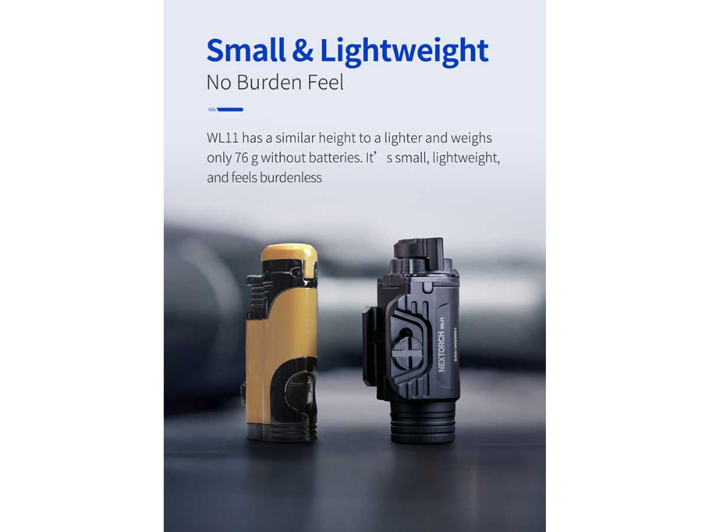 Фонарь WL11 оснащен поворотным переключателем уникальной конструкции вместо обычной кнопки или поворотного переключателя. Это позволяет интуитивно получать доступ как к режимам мгновенного включения, так и режимам постоянного включения, независимо от того, правша вы или левша. Это уменьшает количество ненужных движений, позволяя всегда оставаться наготове.