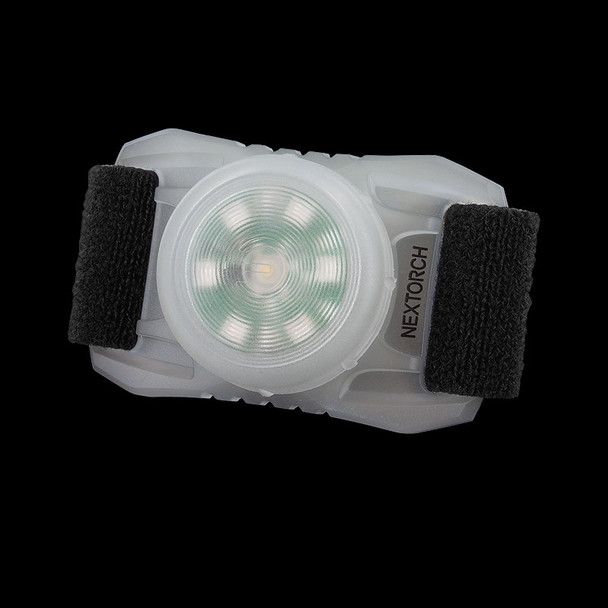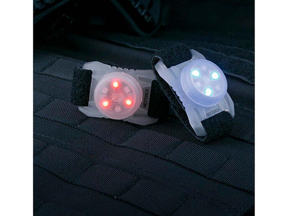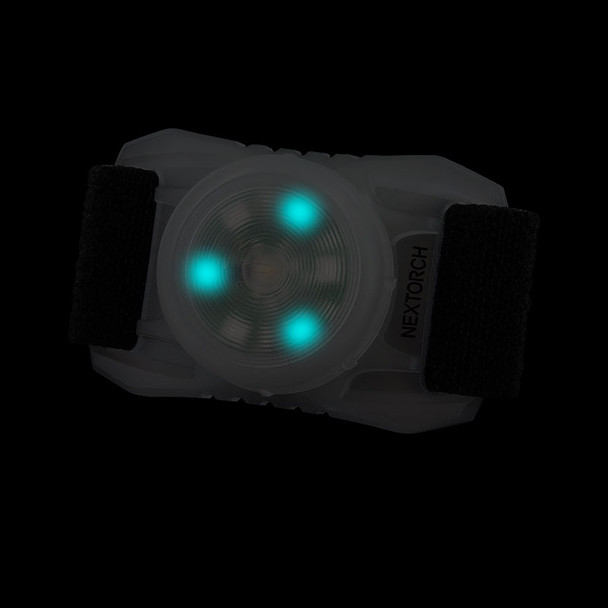 Задний велосипедный сигнальный фонарь Nextorch SL20 с голубым и красным светом. Крепится на подседельный штырь с помощью липучки velcro.