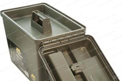 Удобный и вместительный ящик предназначен для транспортировки и хранения боеприпасов, охотничьих принадлежностей и аксессуаров к оружию.