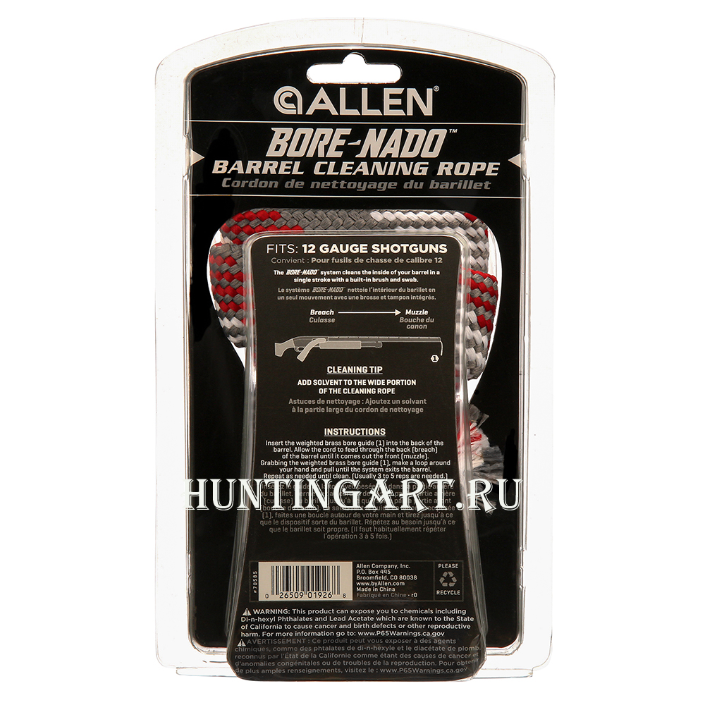 Революционный гибкий шомпол - «змейка» для чистки ствола BORE-NADO ™ от Allen упростит и облегчит заботу о вашем огнестрельном оружии. Это достаточно просто, если совместить чистящий шомпол - змейку, имеющий на большей части профиль плоского каната, а на меньшей – профиль круглого тонкого каната, с применением выбранного вами сольвента. Очистить оружие от дула до патронника можно за один проход, но при необходимости проход гибким шомполом по сольвенту надо повторить несколько раз, добиваясь полной очистки.