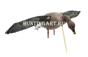 Электромеханический гусь гуменник управляется с помощью ДУ пульта. Складные крылья. Кормящаяся поза. Устанавливается на стекловолоконную стойку. Сумка для переноски в комплекте. Аккумулятор в комплект не входит!