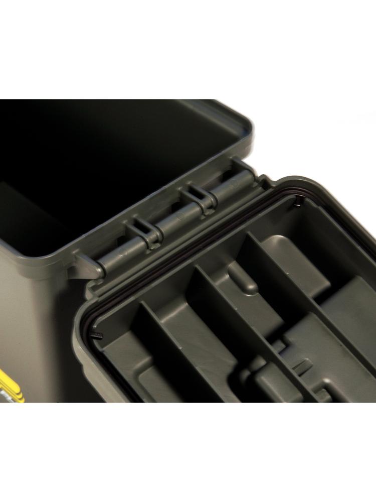 Удобный ящик для хранения и транспортировки охотничьих патронов до 100 шт или принадлежностей из прочного не бьющегося пластика. Выполнен из ударопрочного пластика, оснащен складывающейся ручкой для переноски и надежным боковым замком с возможностью повесить навесной замок. Чтобы сохранить ваши боеприпасы в безопасности конструкция снабжена жесткой крышкой с герметичным уплотнительным кольцом, что делает бокс водонепроницаемым. Прочная конструкция держит ваши боеприпасы в безопасности, в то время как уплотнительное кольцо делает его водонепроницаемым, чтобы сохранить ваши боеприпасы в сухости во время путешествия.