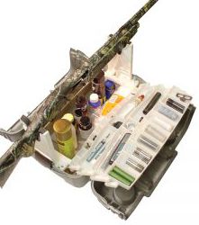 Пластиковый ящик для хранения, транспортировки и чистки оружия. Множество отсеков для мелкого снаряжения по уходу за оружием. Имеются две подставки для чистки оружия, ручка для переноски. Вес ящик 2,3 кг. Крышки ящика раскладываются полностью для обеспечения максимального доступа к оружию и снаряжению.