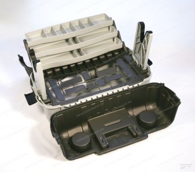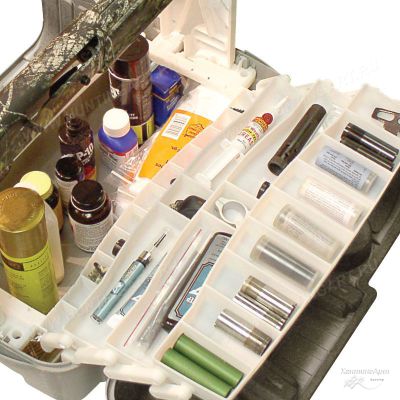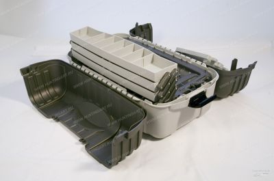 Пластиковый ящик для транспортировки (хранения) аксессуаров и принадлежностей к оружию. Для чистки оружия в комплекте имеются подставки. В ящике много лотков с разграничителями для мелкого снаряжения и инструмента. Комфортная ручка для переноски. Удобные и надежные замки. Предусмотрена возможность использования дополнительного навесного замка. Крышки ящика раскладываются полностью для обеспечения максимального доступа к оружию и снаряжению.