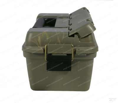 Удобный ящик для хранения и транспортировки охотничьих патронов и принадлежностей из прочного не бьющегося пластика. Удобный боковой замок с возможностью повесить навесной замок (обязательное требование при транспортировке патронов в самолёте). Крышка с уплотнителем. На крышке имеется отсек для мелких принадлежностей (манков, чёков, чистящих средств). Удобная складывающаяся ручка для переноски. Ящик можно брать с собой в лодку, скрадок, в машину, не заботясь о дополнительной сохранности патронов и принадлежностей.