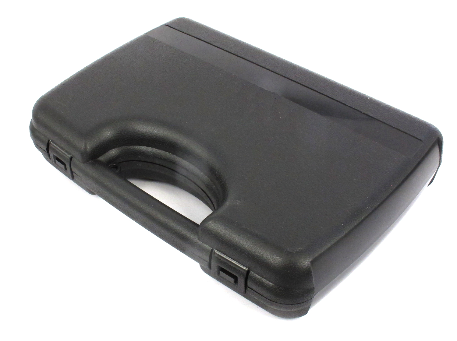Кейс выполнен из ударопрочного ABS пластика черного цвета и пенополимера. Внутри кейса с двух сторон находится наполнитель, вспененный волнистый поролон для более универсального использования кейса. Закрывается кейс на 2 защёлкивающихся пластиковых замка. В корпусе кейса имеются 1 отверствие для навески замка или опломбировки. Переноска осуществляется за удобную пластиковую ручку. Устойчивость кейсу придают небольшие пластиковые ножки.