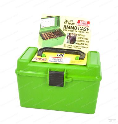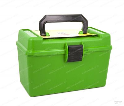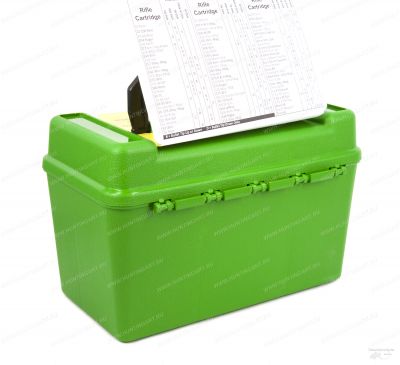 Коробка на 50 патронов для нарезного оружия MTM Deluxe H-50 Series отличается от аналогов наличием специальной вынимающейся пластиковой вставки, для хранения патронов пулями вниз без контакта пуль и капсюлей (нет повреждения пуль и исключена случайная детонация патрона). Коробка закрывается крышкой с защелкой и засовом для пломбы или маленького навесного замка.
