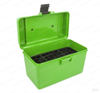 В нижней части каждой ячейки имеются зажимы, которые позволяют фиксировать патроны. Коробка на 50 патронов для нарезного оружия обеспечивает сохранность и защищает боеприпасы от воздействия влаги, пыли, перепадов температуры и повреждений при падениях или перевозке. При хранении или непосредственном использовании патроны для оперативной идентификации можно вставлять в ячейки пулей вверх.