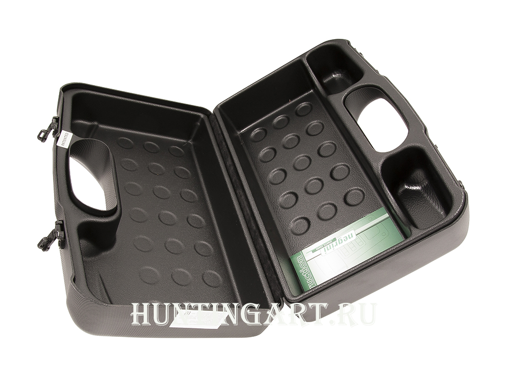 Кейс для хранения и переноски патронов, оружейных аксессуаров. Вмещает в себя до 150 гладкоствольных патронов в пачках. Оснащен двумя кодовыми замками. Подходит для авиаперевозок и автомобиля. Прочная конструкция из ABS пластика.