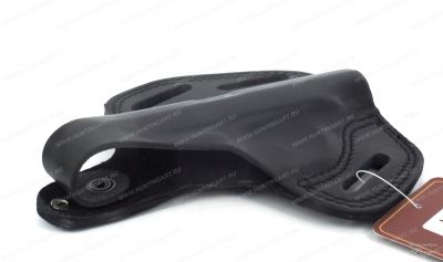 Предназначена кобура для скрытого ношения оружия. Кобура полуоткрытая с фиксацияей оружия через курок. Одинарный страховочный перекидной хлястик застегивается на кнопку с металлической пластинкой, для удобства расстегивания одним пальцем. Кобура не застрочена со стороны дульного среза, чтобы в ней не конденсировалась влага и не скапливалась грязь. Фиксация на ремне производится с помощью прорезей на задних стенках ушей кобуры, которые позволяет носить пистолет вдвух различных положениях. Кроме варианта вертикального ношения изделие можно носить с небольшим наклоном вперед приблизительно 20°, что способствует более естественному хвату. Два уха, через которые проходит ремень максимально прижимают кобуру с пистолетом к поясу, что делает пистолет практически незаметным даже с легкой одеждой. Кобура обеспечивает удобство использования, безопасность хранения и неожиданность применения оружия.