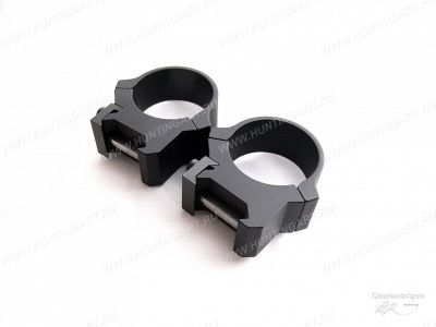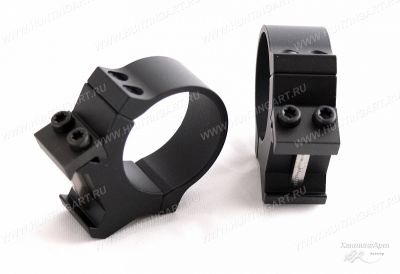 Крепления выполнены полностью из стали и имеют специальные противоскользящие пазы во внутренней поверхности колец, которые обеспечивают более плотный контакт между кольцами и прицелом. Устанавливаются данные кольца на планки типа Weaver/Picatinny при помощи двух боковых винтов. Верхние половинки колец крепятся к нижним при помощи 2-х винтов с каждой стороны.