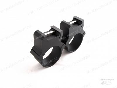 Крепления выполнены полностью из стали и имеют специальные противоскользящие пазы во внутренней поверхности колец, которые обеспечивают более плотный контакт между кольцами и прицелом. Устанавливаются данные кольца на планки типа Weaver/Picatinny при помощи двух боковых винтов. Верхние половинки колец крепятся к нижним при помощи 2-х винтов с каждой стороны.