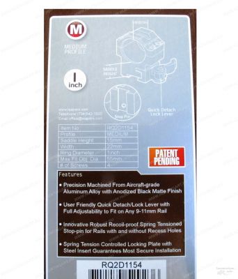 Кольца средние с диаметром 25,4 мм, быстросъемные на 11 мм с рычажным зажимом от Американской компании Leapers.