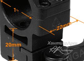 Кольца высокопрофильные, для малокалиберных и пневматических винтовок, для установки на "ласточкин хвост". В конструкции колец имеется технологическое отверстие, которое позволяет при установленном прицеле стрелять, используя открытые прицельные приспособления (целик, мушка).