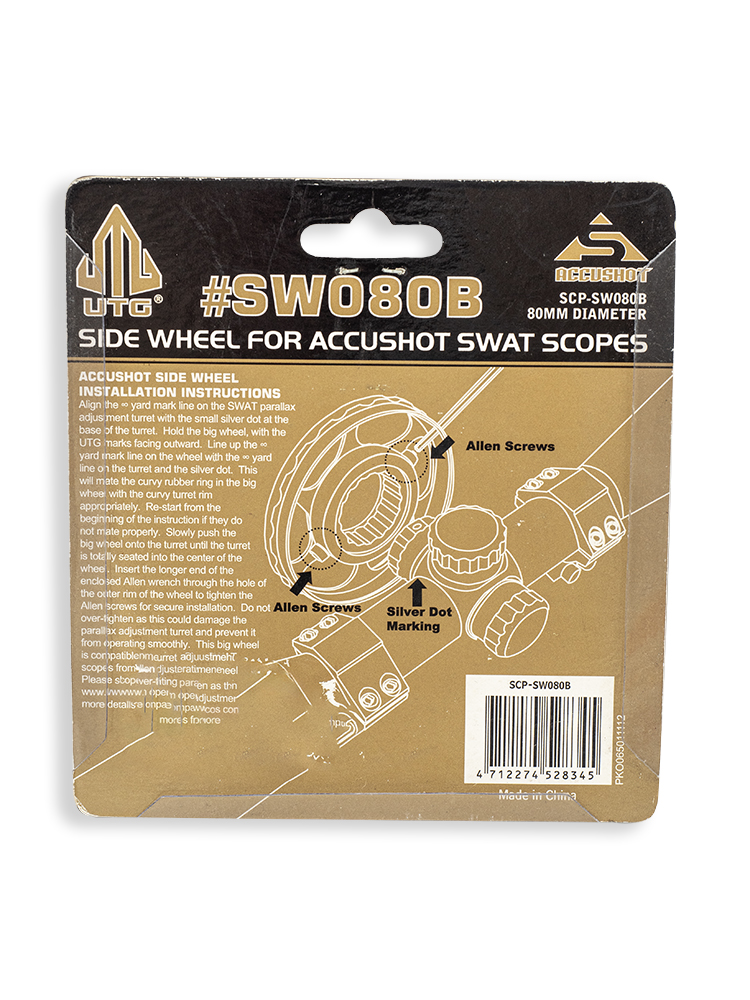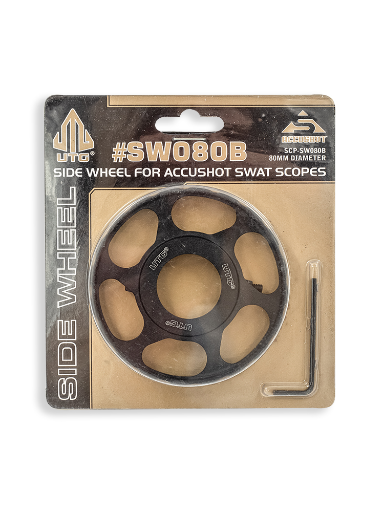 Колесо диаметром 80 мм для точной, легкой, простой подстройки парралакса у прицелов нового поколения Leapers Accushot. Имеет численные обозначения для быстрой выставления правильной дистанции.