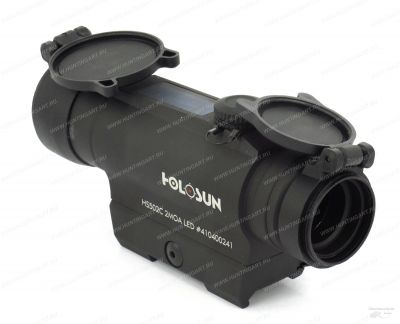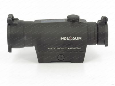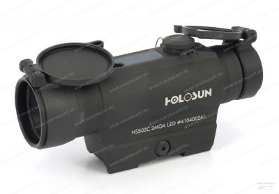 Модель HS502С является коллиматорным прицелом с маркой «красный круг с точкой». Имеет двойной источник питания, быстросъемный флажковый кронштейн и таким расположением батарейки, которое не препятствует обзору и присутствует датчик движения, который включает прицел. Батарейный отсек внешний имеет форму лотка, в который вкладывается батарейка и задвигается в корпус коллиматора. В условиях слабой освещенности, когда солнечной энергии недостаточно, нехватка энергии компенсируется батарейкой. Возможно переключение между двумя режимами работы прицела – автоматическим и ручным. В коллиматоре применяется высококачественные полированные линзы с просветляющим покрытием. Точка прицеливания и точка попадания не меняют своего положения независимо от положения головы стрелка. В прицелах используются линзы кратностью 1х (без приближения).