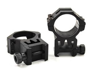 Корпус выполнен из алюминиевого сплава, поверхность анодирована, устойчива к коррозии. Каждое кольцо фиксируется на базе оружия стальным винтом с колесиком, который можно закрутить рукой. Кольца оснащены основанием Weaver и предназначены для установки прицела с трубкой, диаметр которой равняется 30 мм. В конструкции колец имеется технологическое отверстие, которое позволяет при установленном прицеле стрелять, используя открытые прицельные приспособления (целик, мушка).