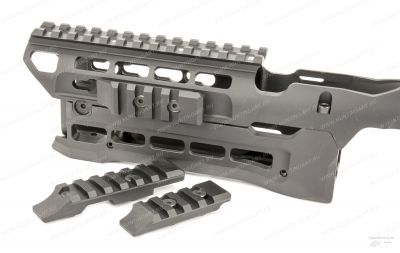 После установки направляющие Пикатинни располагаются на цевье, накладке на газовую трубку и крышке ствольной коробки. Для универсальности использования и возможности индивидуальной настройки боковые планки и нижняя планка сьемные. Нижняя планка подойдет для сошек, тактических рукояток и др., две боковые направляющие планки Пкатинии идеально подходят для установки фонаря / лазера и других аксессуаров. При необходимости их можно передвинуть на нужное расстояние или убрать совсем для более удобного удержания цевья.